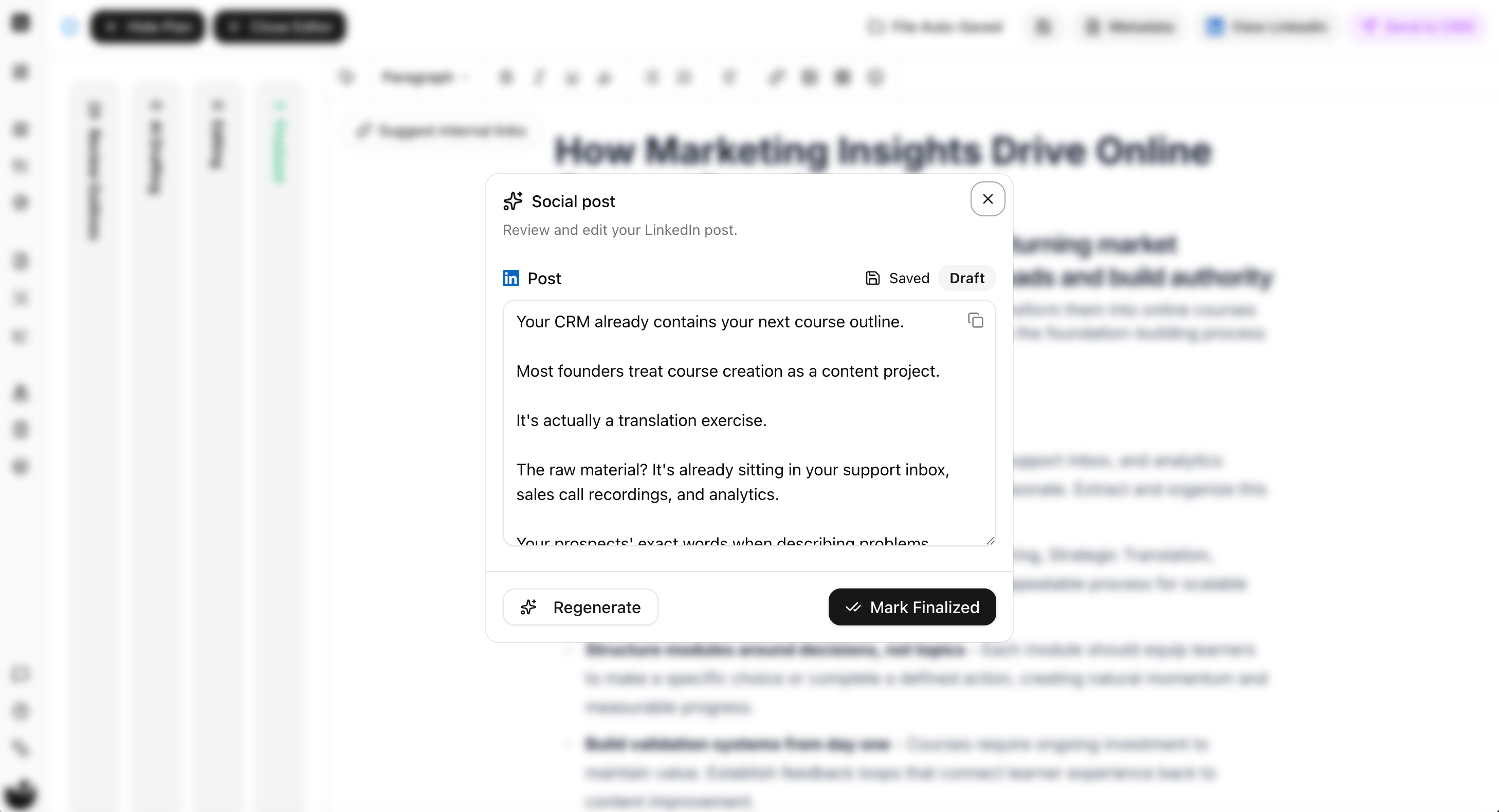Here's what we kept seeing: teams publish a great article, then forget to share it on LinkedIn. Or they share it — by copying the intro paragraph, pasting it into a post, and hoping for the best. Meanwhile, their blog has 40 articles that don't link to each other, so Google thinks each one exists in isolation.